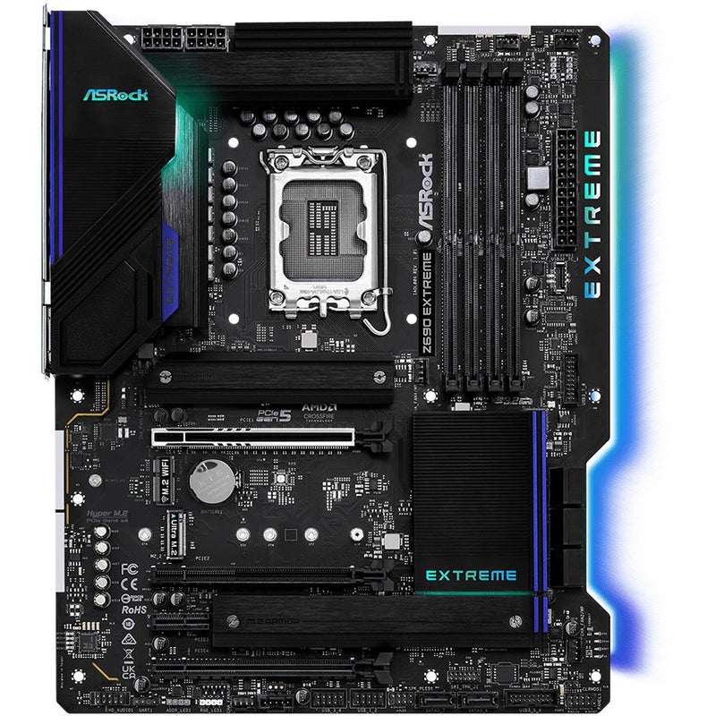 Asrock Z690 Extreme. Prozessorhersteller: Intel. Prozessorsockel: LGA 1700. Kompatible Prozessoren: Intel® Core™ i3. Intel® Core™ i5. Intel® Core™ i7. Intel® Core™ i9. Unterstützte Arbeitsspeicher: DDR4-SDRAM. RAM-Speicher maximal: 128 GB. Arbeitsspeicher Typ: DIMM. Unterstützte Speicherlaufwerk-Schnittstellen: M.2. SATA III. RAID Level: 0. 1. 5. 10. Ethernet Schnittstellen Typ: 2.5 Gigabit Ethernet. Gigabit Ethernet. LAN-Controller: Dragon RTL8125BG. Intel WGI219V. Komponente für: PC. Motherboardformfaktor: ATX. Motherboard Chipsatz Familie: Intel