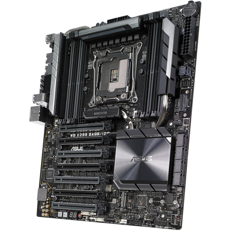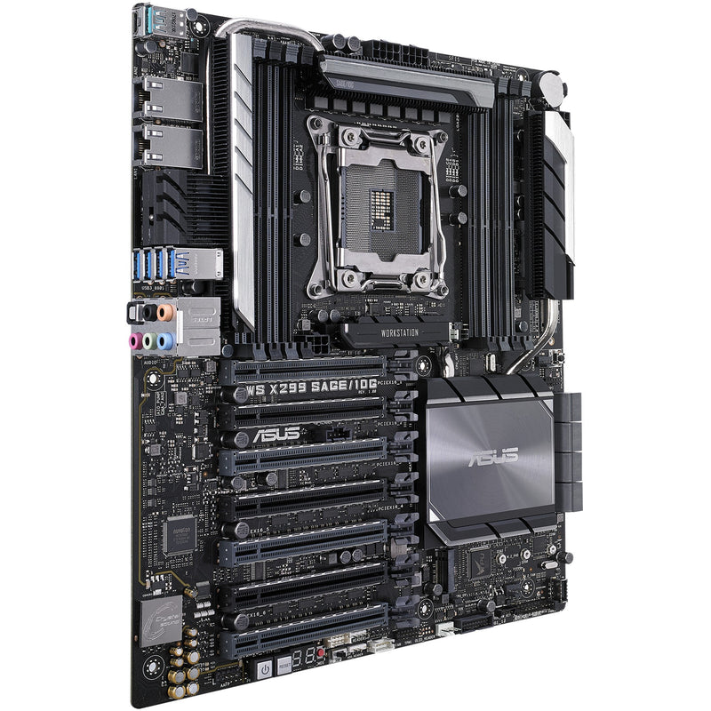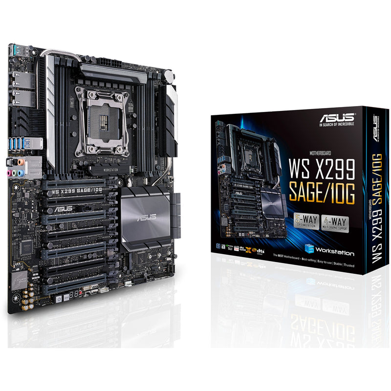 ASUS WS X299 SAGE/10G. Prozessorhersteller: Intel. Prozessorsockel: LGA 2066 (Socket R4). Unterstützte Prozessorsteckplätze: LGA 2066. Unterstützte Arbeitsspeicher: DDR4-SDRAM. RAM-Speicher maximal: 512 GB. Speicherkanäle: Vierfach-Kanal. Unterstützte Speicherlaufwerk-Schnittstellen: SATA III. RAID Level: 0. 1. 5. 10. Parallele Verarbeitungstechnologie: 4-Way CrossFireX. 4-Way SLI. Ethernet Schnittstellen Typ: 10 Gigabit Ethernet. LAN-Controller: Intel® X550-AT2