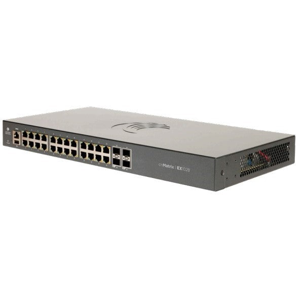 Cambium Networks cnMatrix | EX1028. Switch-Typ: Managed. Switch-Ebene: L2/L3. Basic Switching RJ-45 Ethernet Ports-Typ: Gigabit Ethernet (10/100/1000). Anzahl der basisschaltenden RJ-45 Ethernet Ports: 24. Anzahl installierten SFP Module: 4. MAC-Adressentabelle: 16000 Eintragungen. Netzstandard: IEEE 802.1D. IEEE 802.1Q. IEEE 802.1ab. IEEE 802.1p. IEEE 802.1s. IEEE 802.1w. IEEE 802.1x. IEEE.... Rack-Einbau. Formfaktor: 1U