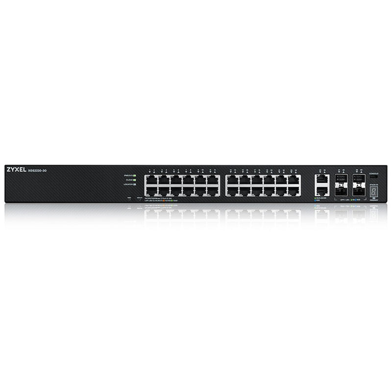 Zyxel XGS2220-30. Switch-Typ: Managed. Switch-Ebene: L3. Basic Switching RJ-45 Ethernet Ports-Typ: Gigabit Ethernet (10/100/1000). Anzahl der basisschaltenden RJ-45 Ethernet Ports: 24. Anzahl installierte SFP Module: 4. MAC-Adressentabelle: 32000 Eintragungen. Routing-/Switching-Kapazität: 168 Gbit/s. Netzstandard: IEEE 802.1Q. IEEE 802.1ab. IEEE 802.1p. IEEE 802.1x. IEEE 802.3ab. IEEE 802.3ae. IEEE 802.3an..... Rack-Einbau