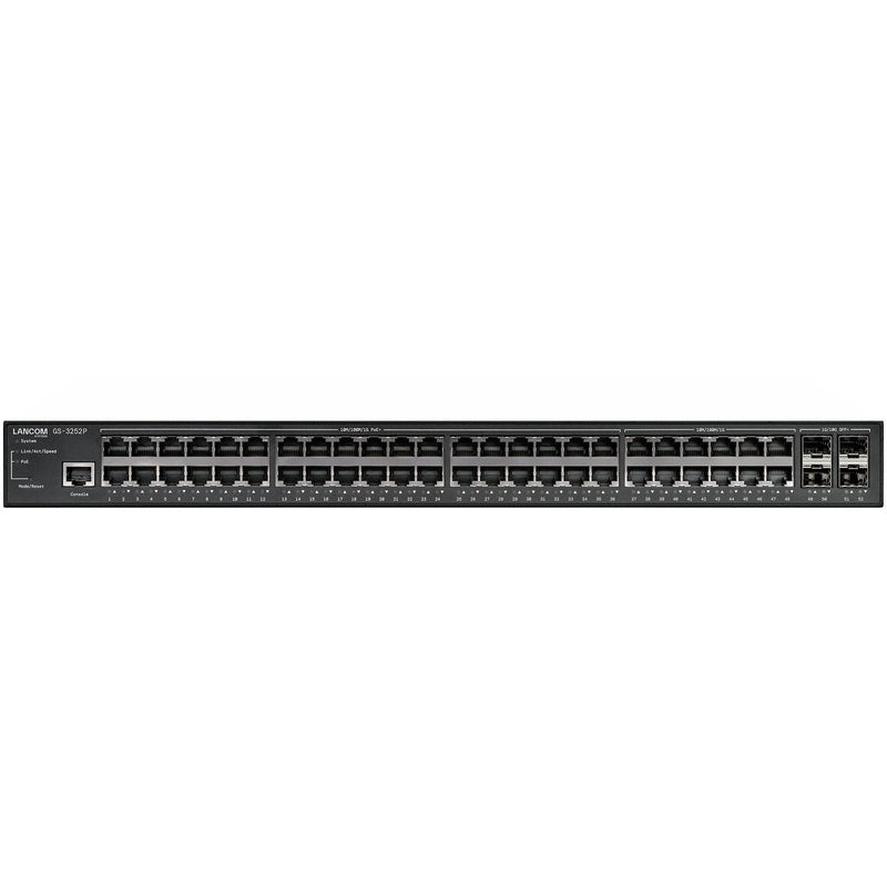 LANCOM GS-3252P. Switch-Typ: Managed. Switch-Ebene: L3. Basic Switching RJ-45 Ethernet Ports-Typ: Gigabit Ethernet (10/100/1000). Anzahl der basisschaltenden RJ-45 Ethernet Ports: 48. Konsolen-Port: RJ-45. MAC-Adressentabelle: 32000 Eintragungen. Routing-/Switching-Kapazität: 176 Gbit/s. Netzstandard: IEEE 802.1AX. IEEE 802.1D. IEEE 802.1Q. IEEE 802.1ab. IEEE 802.1ad. IEEE 802.1ak. IEEE 802.1p..... Netzstecker: AC-Eingangsbuchse. Power over Ethernet (PoE). Rack-Einbau. Formfaktor: 1U