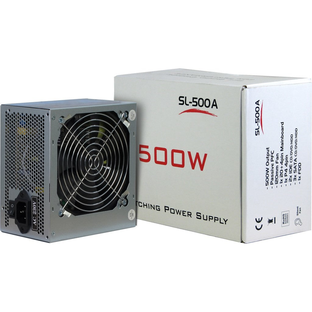 Inter-Tech SL-500A. Gesamtleistung: 500 W. AC Eingangsspannung: 230 V. AC Eingangsfrequenz: 60 Hz. Motherboard Anschlussstecker: 20+4 pin ATX. Kabeltyp: Nicht-modular. Zweck: PC. Stromversorgungseinheit (PSU) Formfaktor: ATX. Geräuschpegel: 25 dB. Produktfarbe: Grau. Lüfterdurchmesser: 12 cm. Anzahl Lüfter: 1 Lüfter. Breite: 150 mm. Tiefe: 140 mm. Höhe: 86 mm