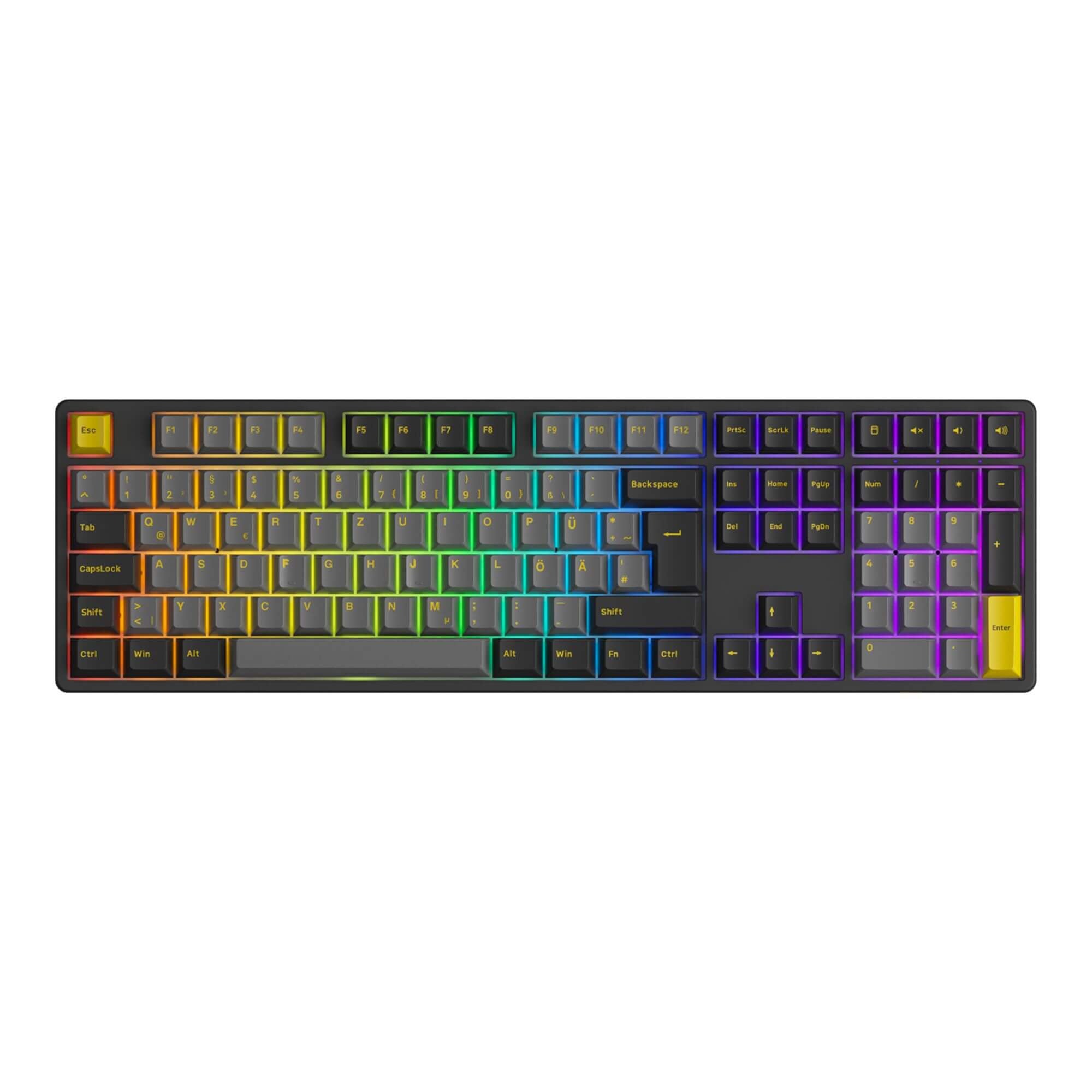 Die Langlebigkeit der Akko 5108B Plus wird durch die PBT Double-Shot Keycaps gewährleistet, die besonders resistent gegen Abnutzung sind. Darüber hinaus sind im Lieferumfang ISO-UK- und ISO-Nordic-Keycap-Sets enthalten, sodass Sie die Tastatur an unterschiedliche Layouts anpassen können, ganz nach Ihren Bedürfnissen.