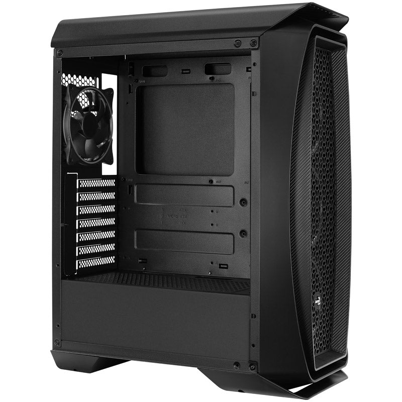 Stylischer Midi-Tower in Schwarz, perforierte Front für guten Airflow, Seitenteil aus Tempered Glass, mit Netzteilabdeckung, inkl. 4x 120-mm-Lüfter und Hub, Grafikkarten bis 327 mm, CPU-Kühler bis 161 mm