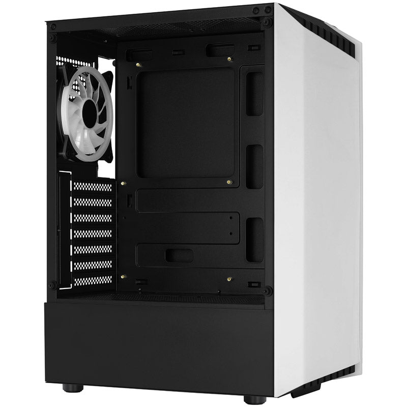Stylischer Midi-Tower in Schwarz-weiß, Front mit RGB-Beleuchtung, inkl. 1x 120-mm-RGB-Lüfter, Temperglas-Seitenteil, mit Zweikammerdesign, Grafikkarten bis 297 mm & CPU-Kühler bis 158 mm