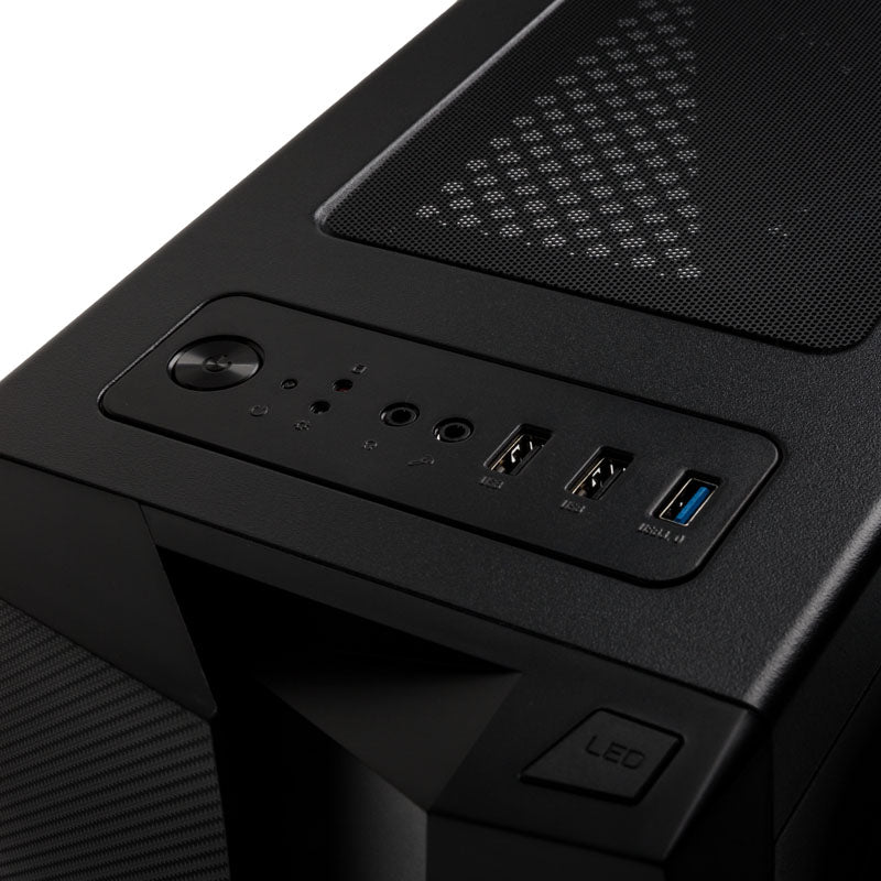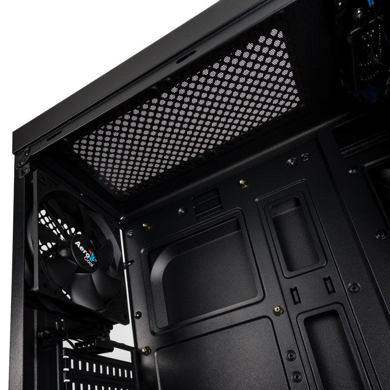 Stylischer Midi-Tower von Aerocool, mit RGB-LED-Beleuchtung in der Front, inkl. 1x 120-mm-Lüfter, Acrylglas-Seitenteil, Grafikkarten bis 355 mm & CPU-Kühler bis 155 mm