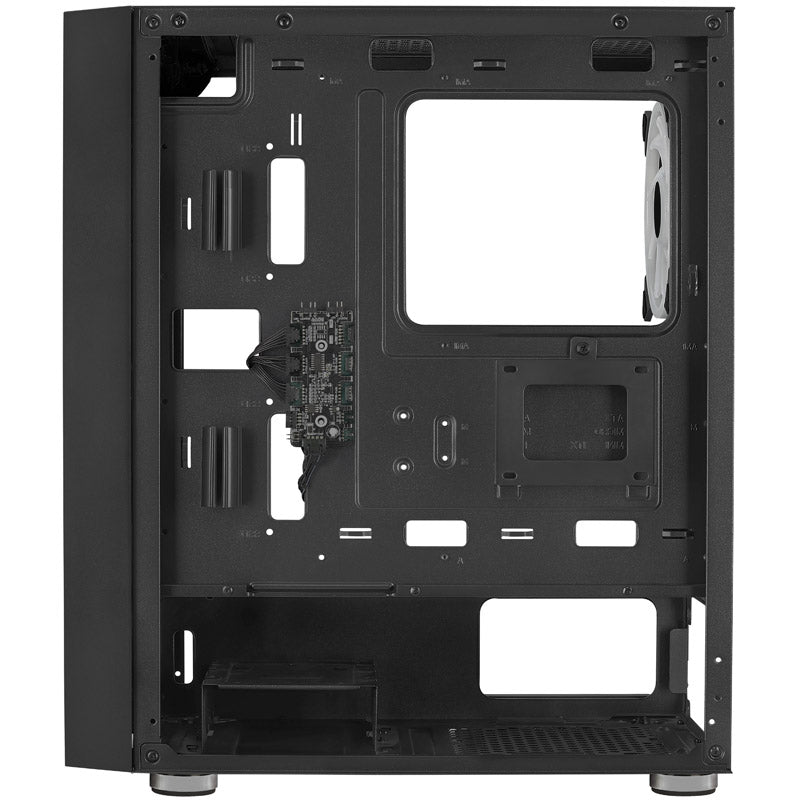 Stylischer Midi-Tower in Schwarz, perforierte Front für guten Airflow, Seitenteil aus Tempered Glass, mit Netzteilabdeckung, inkl. 3x 140-mm-ARGB-Lüfter, Grafikkarten bis 348 mm, CPU-Kühler bis 180 mm