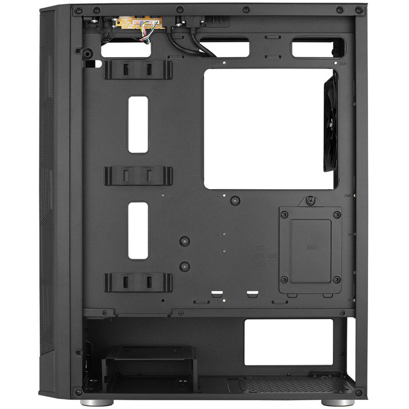 Stylisher Midi-Tower in Schwarz, Seitenteil und Front aus Tempered Glass, inkl. 1x 120-mm-Lüfter, Grafikkarten bis 346 mm, für CPU-Kühler bis 164 mm