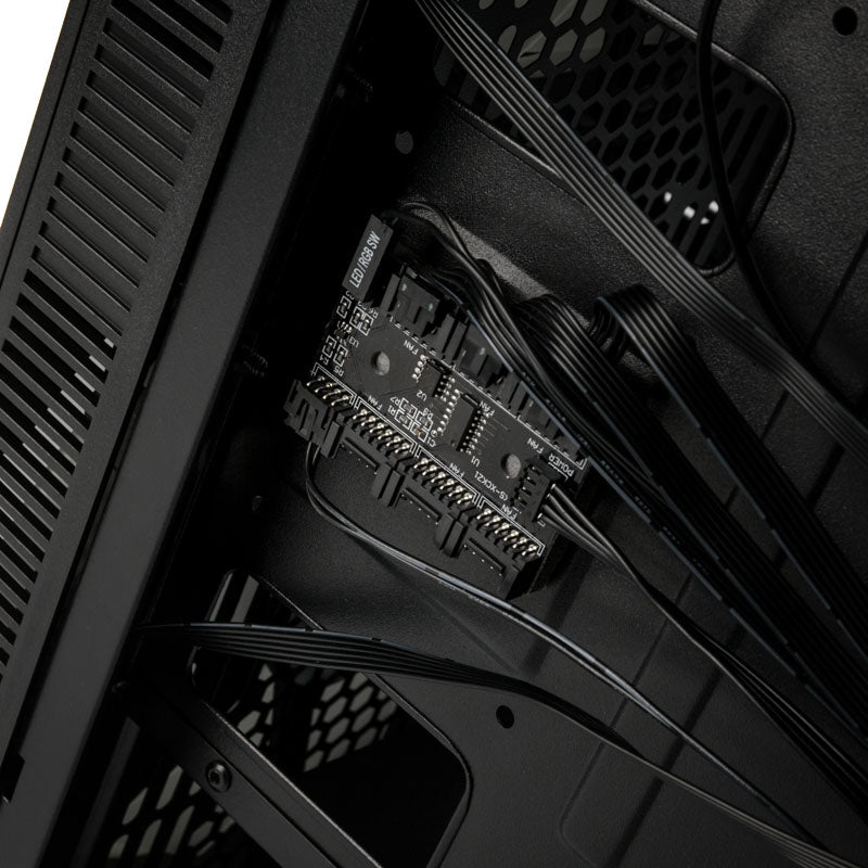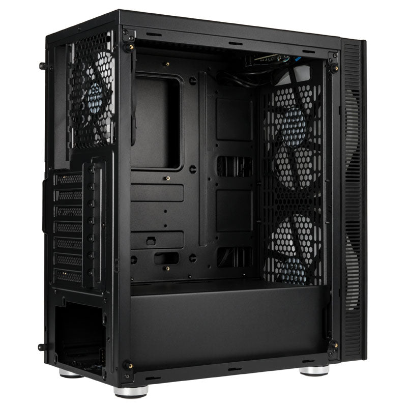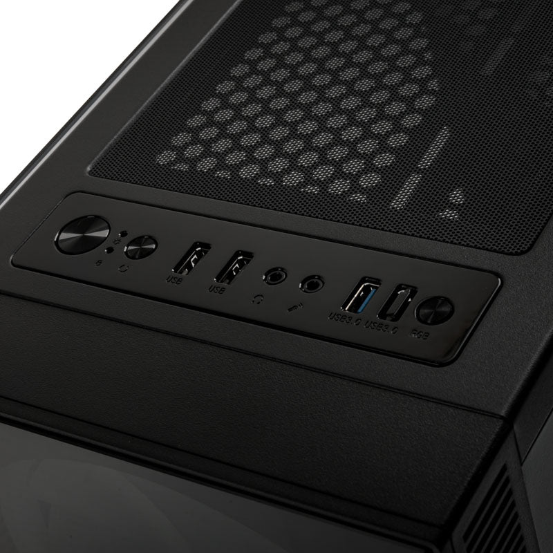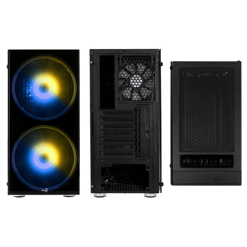 Eleganter Midi-Tower von Aerocool, mit Front und Seitenteil aus Tempered Glass, inkl. 2x 200- und 1x 120-mm-Lüfter mit digital adressierbarer RGB-LED-Beleuchtung, Grafikkarten bis 325 mm & CPU-Kühler bis 164 mm