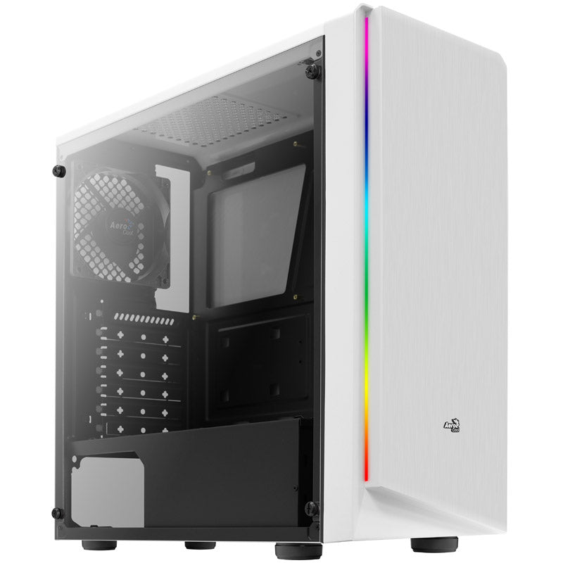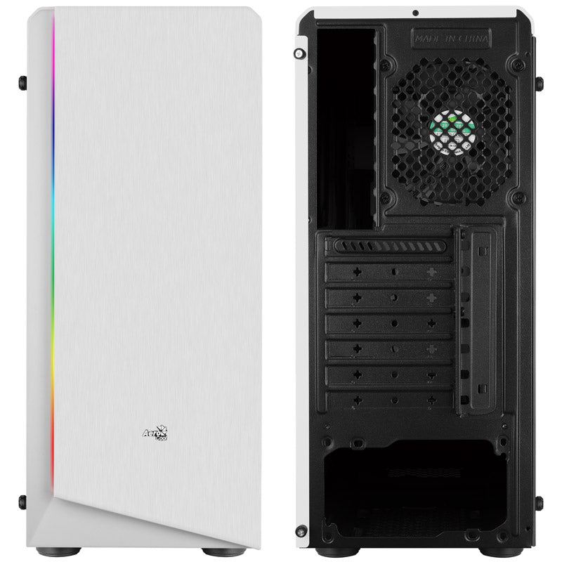 Stylischer Mini-Tower in Weiß und Schwarz, Front mit RGB-Streifen und Mesh-Einlässen für guten Airflow, Seitenteil aus Acrylglas, inkl. 1x 120-mm-Lüfter, Grafikkarten bis 371 mm, CPU-Kühler bis 155 mm