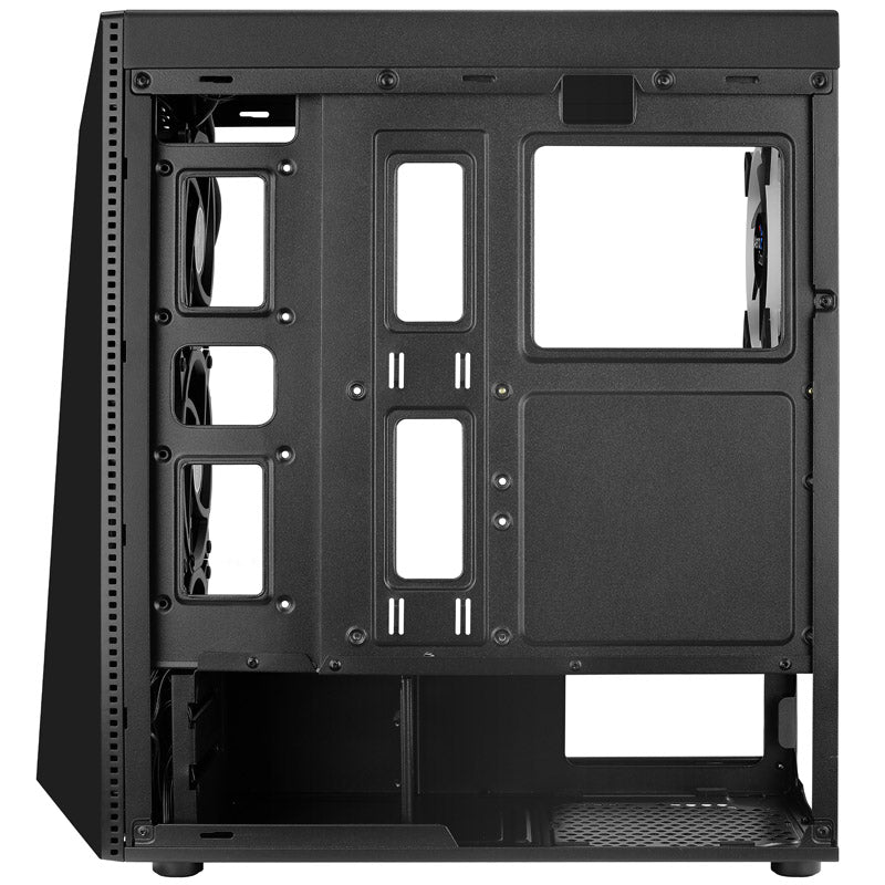 Stylischer Mini-Tower in Schwarz, Front mit RGB-LED-Strip, Seitenteil aus Tempered Glass, mit Netzteilabdeckung, inkl. 1x 120-mm-Lüfter, Grafikkarten bis 355 mm, CPU-Kühler bis 155 mm