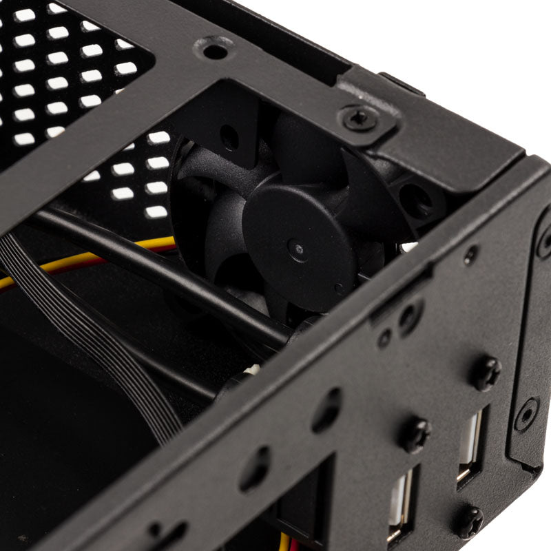 Kompaktes Mini-STX-Gehäuse von Akasa, 2x 2,5-Zoll HDD/SSD, Vorbereitung für USB-Typ-A und Typ-C, 2x USB-Port an der Rückseite, hochwertig verarbeitet