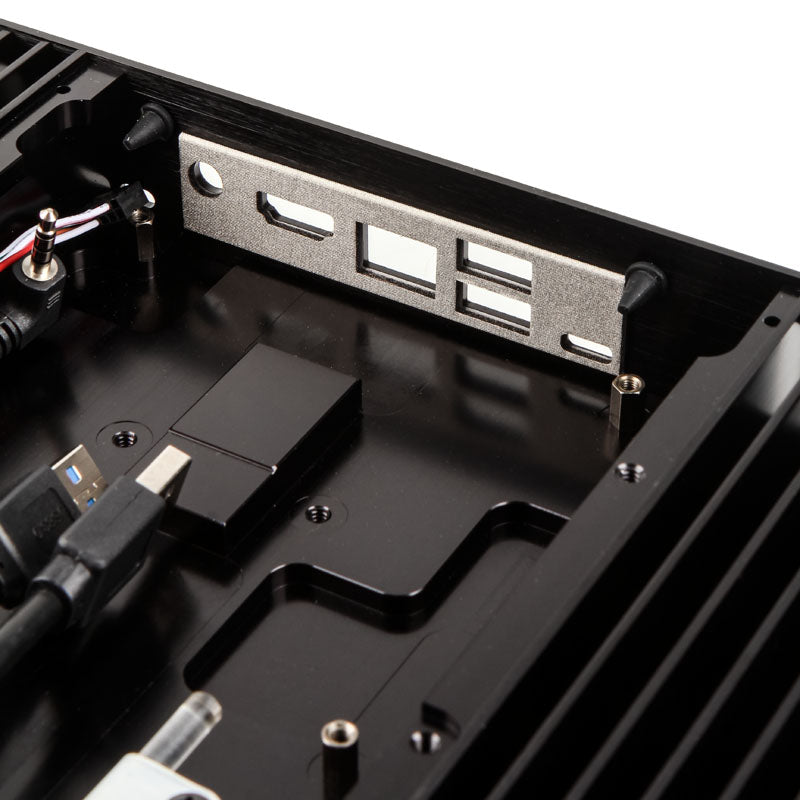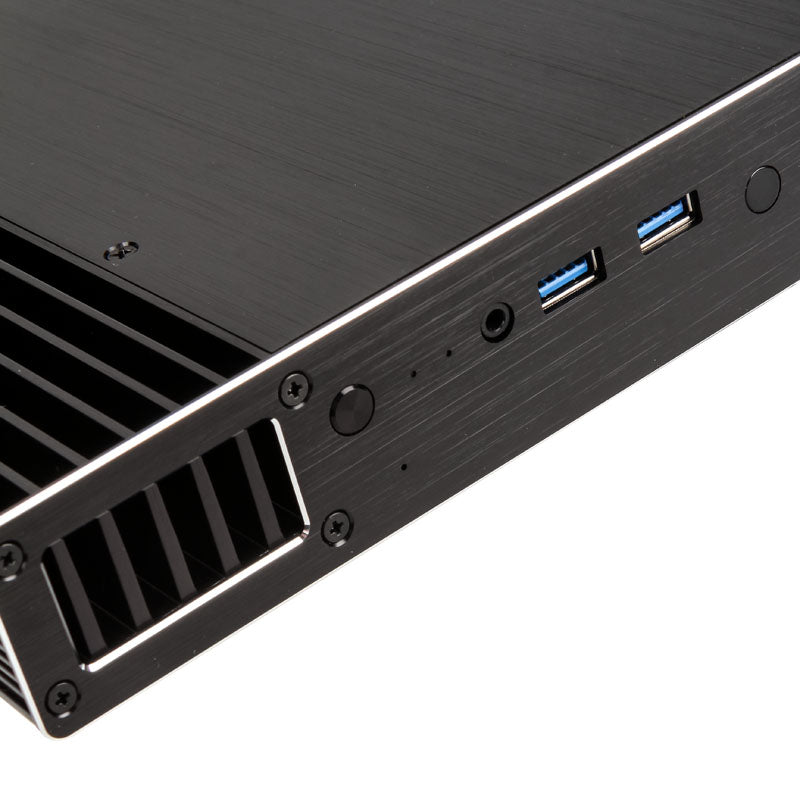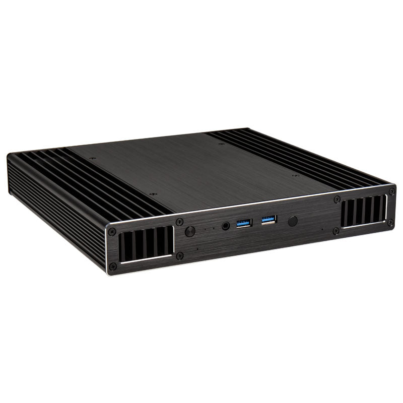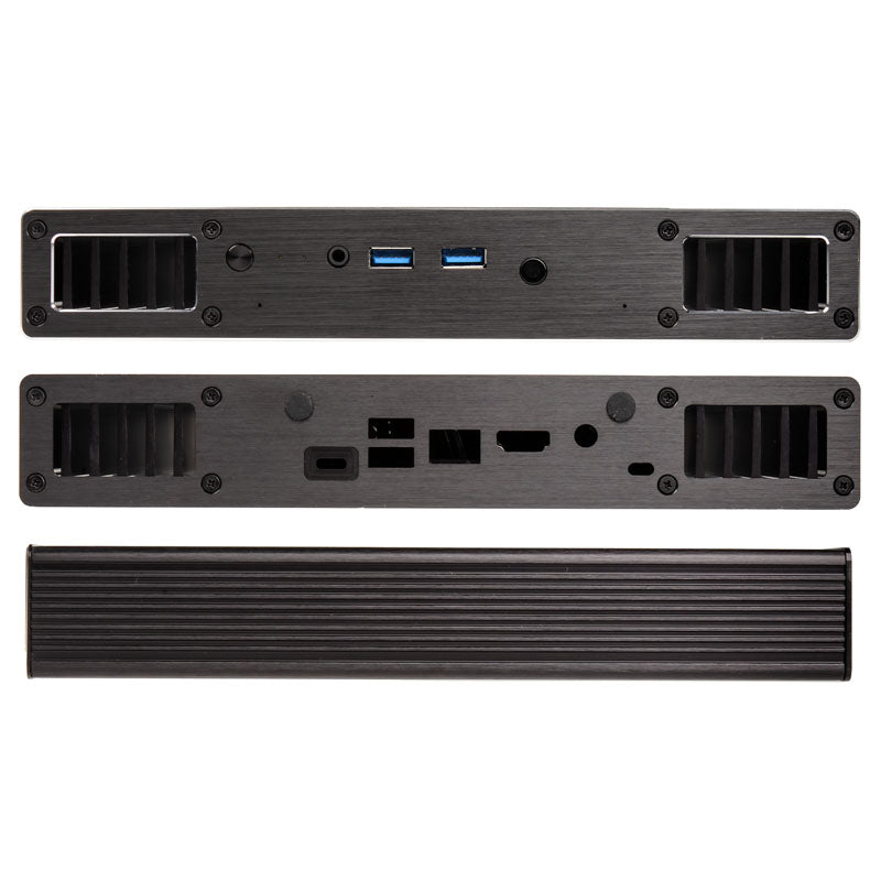 Kompaktes & lüfterloses Alu-Gehäuse, für Intel-NUC-Boards der siebten Generation, im UCFF-Format mit 2x USB 3.0 und SSD-Support