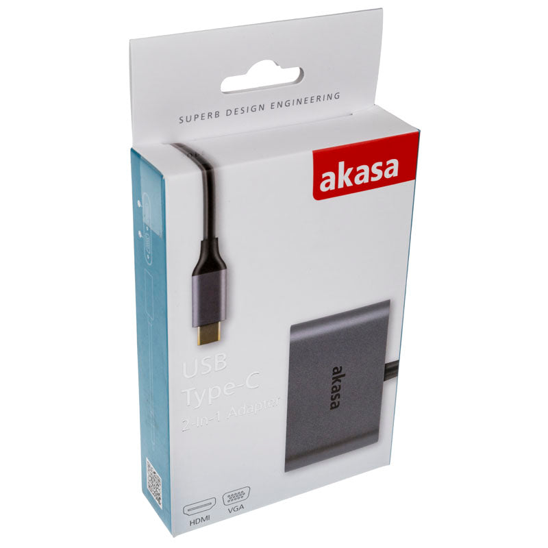 Akasa USB Typ C 2-In-1 Display-Adapter - silber
