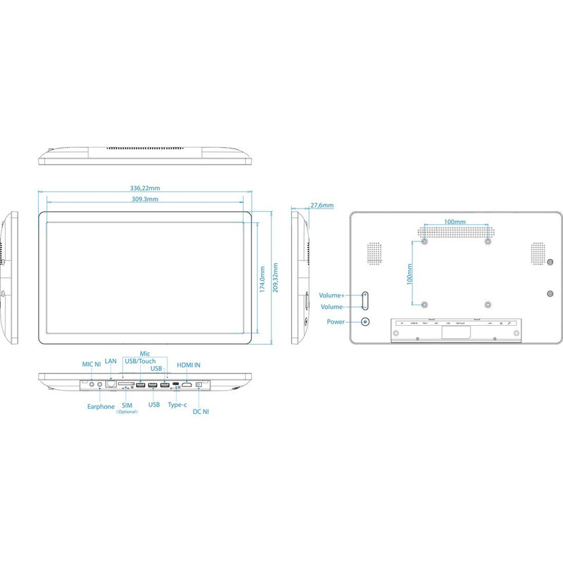 ALLNET High Performance Display 14 Zoll LTE Android 12 RK3588 NFC PoE HDMI In Farbe schwarz