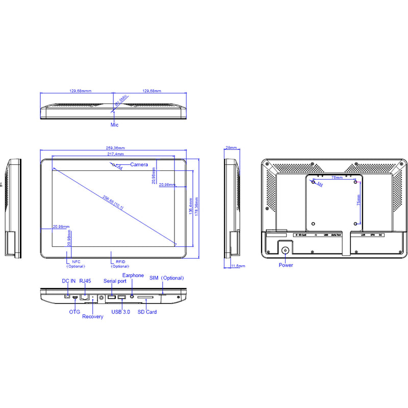 ALLNET Meetingraum RGB LED Tablet 10 Zoll RK3568 Android 11 und NFC/RFID Farbe schwarz