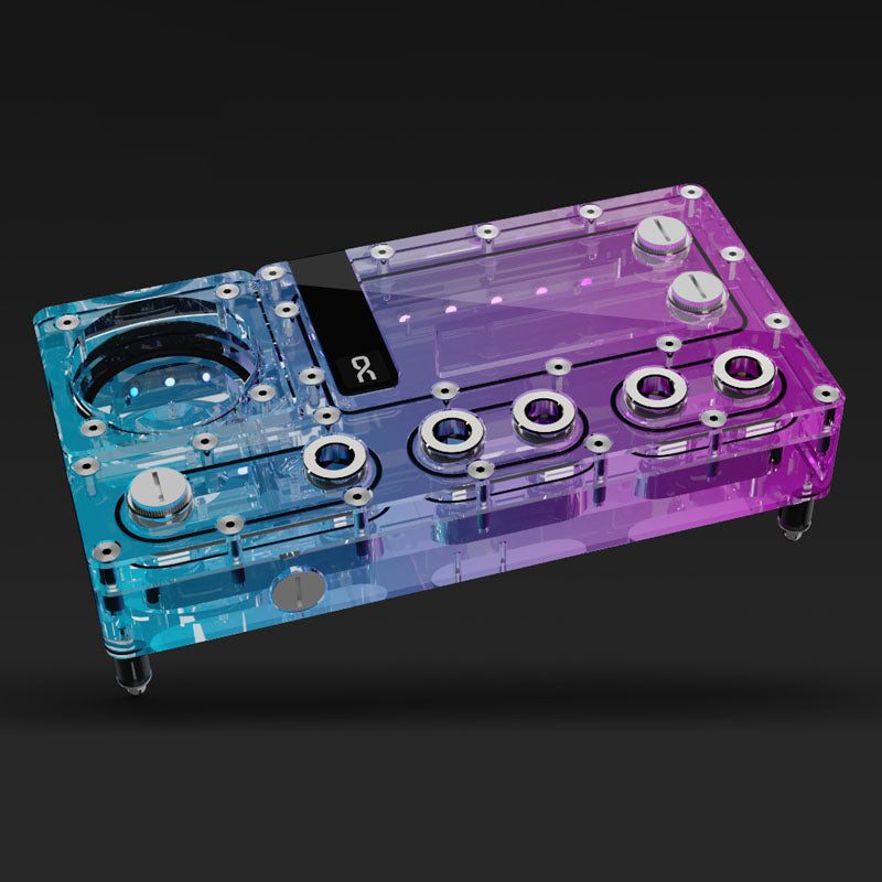 Die Distroplate bietet eine montierbare Lösung für D5-Pumpen, die eine effiziente Kühlung und eine einfache Installation gewährleistet. Mit dem integrierten Reservoir sind Sie in der Lage, Ihr Kühlsystem übersichtlich und kompakt zu gestalten, während die integrierte RGB-Beleuchtung Ihrem Setup eine moderne und individuelle Note verleiht.