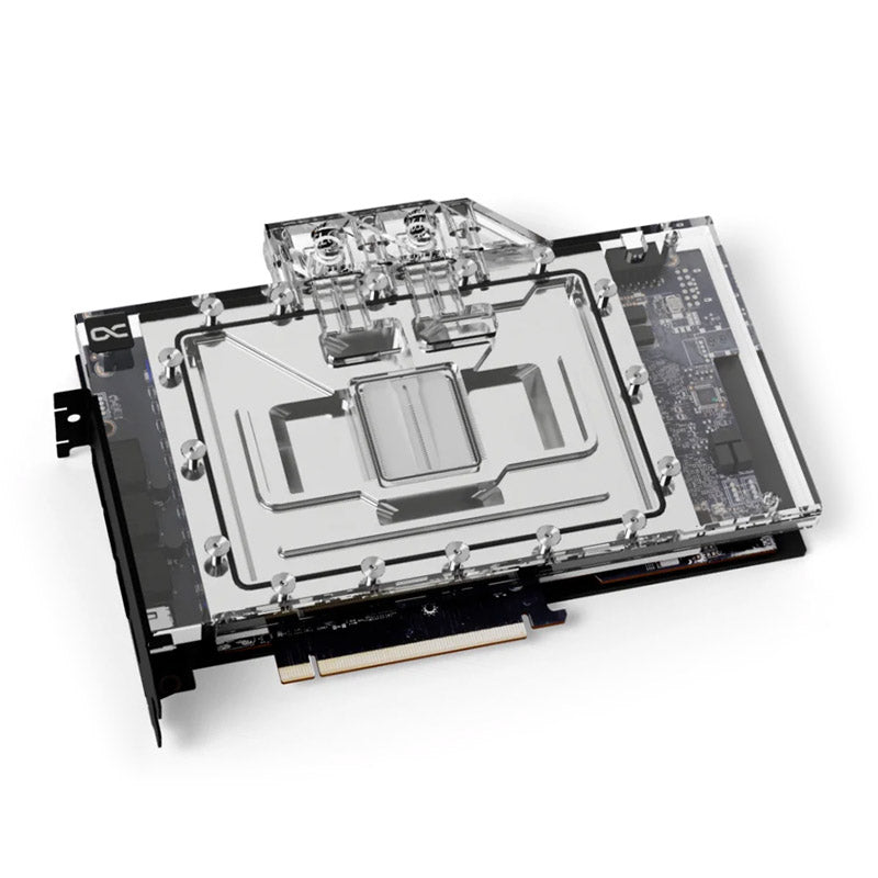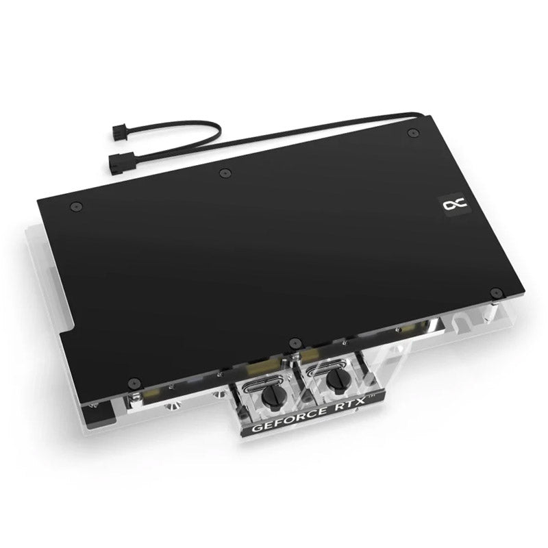 Der Kühler kombiniert einen vernickelten Kupferkühler mit einer eleganten Acryl-Oberfläche, die nicht nur die thermische Effizienz steigert, sondern auch für einen beeindruckenden visuellen Effekt sorgt. Die Backplate bietet zusätzlichen Schutz und verstärkt die Gesamtstabilität Ihrer Grafikkarte.