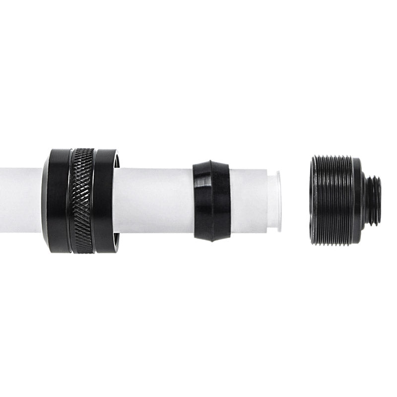 Mit einem Anschluss von G1/4 Zoll AG auf 16 mm Hardtube bietet der Eiszapfen Pro eine hervorragende Passgenauigkeit, die für eine effiziente Kühlleistung unerlässlich ist. Durch die elegante schwarze Oberfläche fügt sich das Fitting nahtlos in jedes Kühlsystem ein und verleiht Ihrem Setup einen professionellen Look.