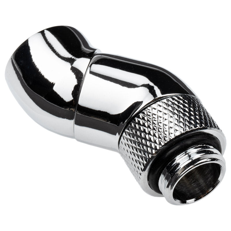 Mit einem praktischen 45-Grad-Winkel sorgt dieser Adapter dafür, dass Sie auch in engen Gehäusekonfigurationen optimale Schlauchführungen erreichen können. Er bietet nicht nur eine exzellente Leistung, sondern fügt sich auch stilvoll in Ihr System ein, dank der glänzenden Chrom-Oberfläche, die ein elegantes und modernes Erscheinungsbild schafft.