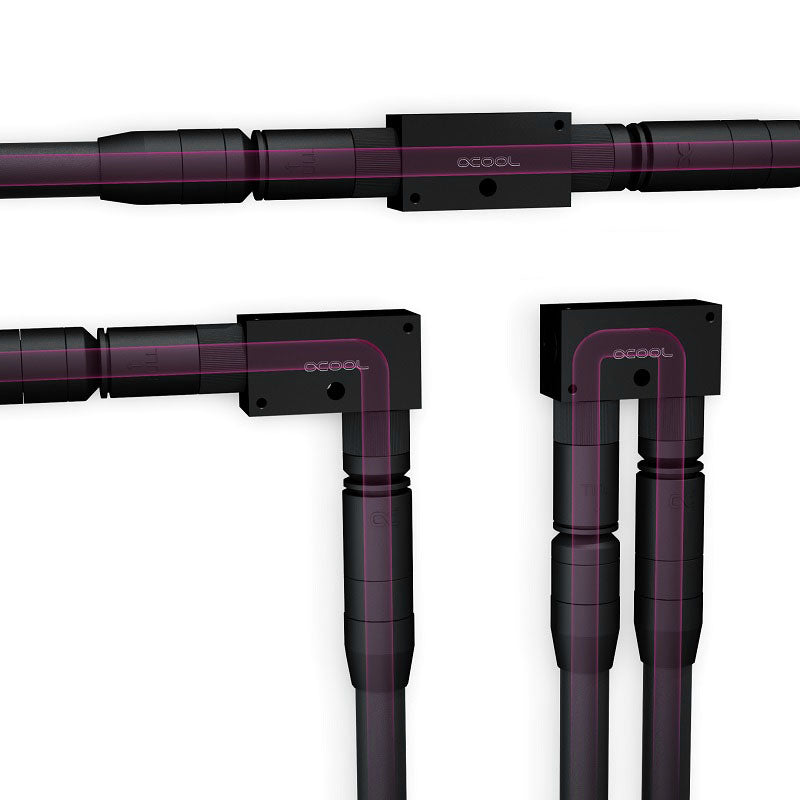 Die Distro Plate ist vielseitig einsetzbar und ermöglicht es Ihnen, Ihre Kühl- oder Flüssigkeitskreisläufe individuell zu gestalten. Mit vier G1/4-Zoll-Anschlüssen ausgestattet, lässt sich die Distro Plate nahtlos in Ihre bestehende Konfiguration integrieren, um optimale Leistung sicherzustellen. Das schwarze Acetal-Material verleiht nicht nur eine edle Optik, sondern sorgt auch für Robustheit und Langlebigkeit.