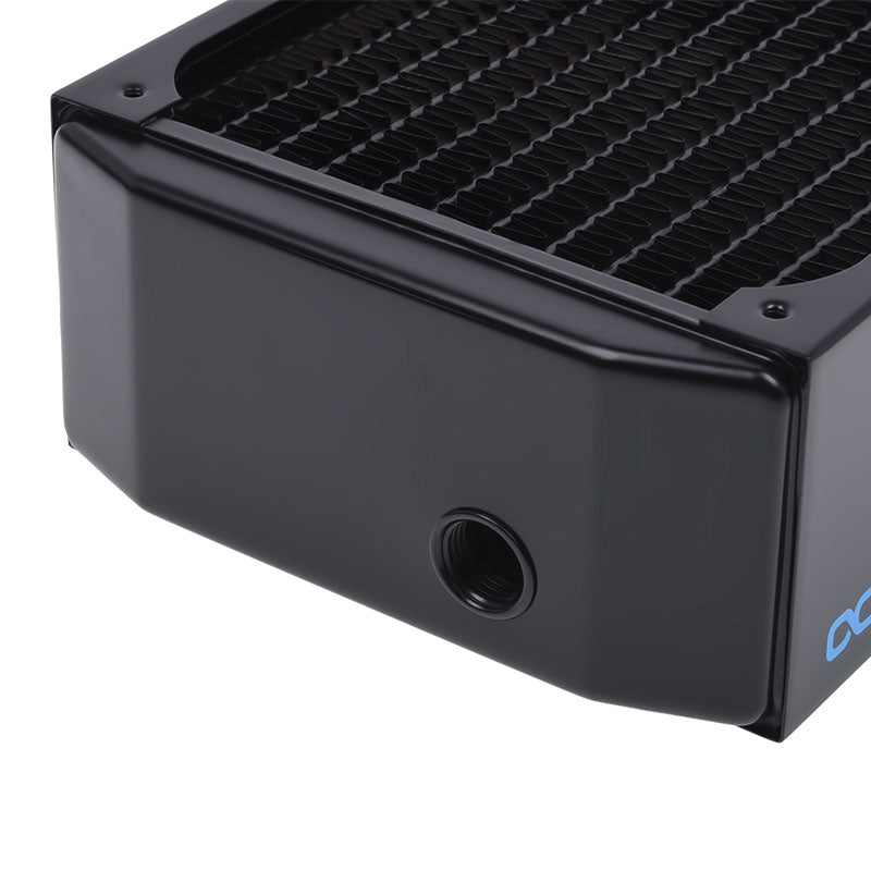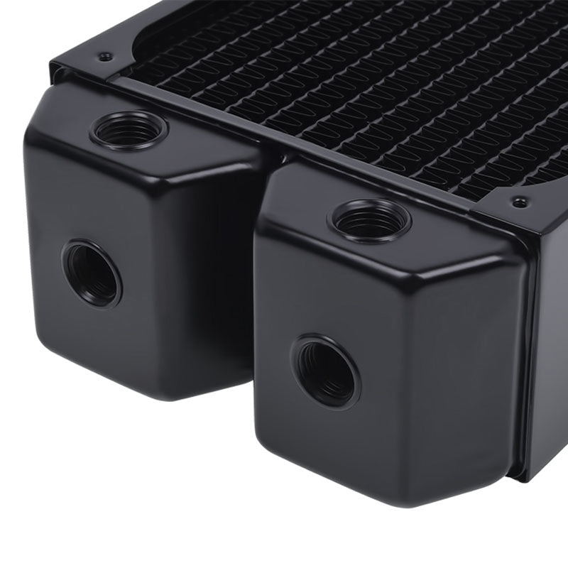 Mit dem eleganten schwarzen Finish fügt sich dieser Radiator nahtlos in jede Systemkonfiguration ein und setzt gleichzeitig stylishe Akzente. Dank der durchdachten Konstruktion lässt er sich einfach in Ihr Custom-Wasserkühlungssystem integrieren.