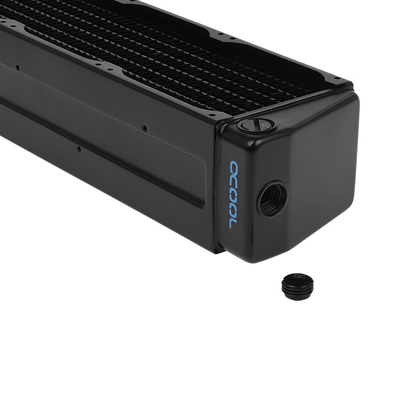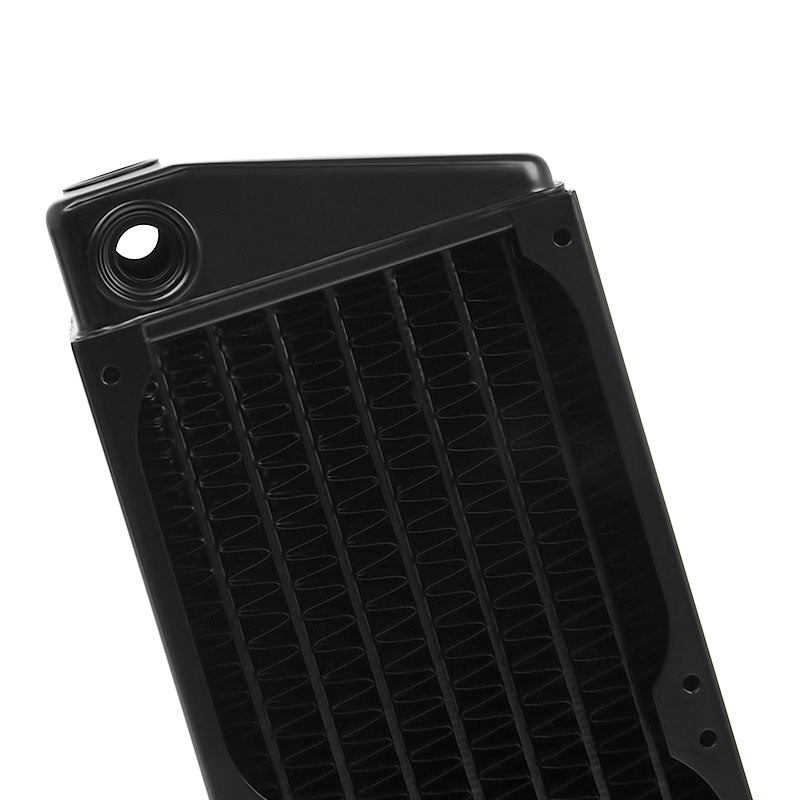 Die hochwertigen Kupferfinnen und Kanäle gewährleisten eine hervorragende Wärmeleitfähigkeit, die entscheidend für die optimale Leistung Ihres Systems ist. Der Radiator ist mit drei G1/4-Zoll-Anschlüssen ausgestattet, die eine flexible Anpassung an Ihr Kühlsystem ermöglichen und die Installation erleichtern.