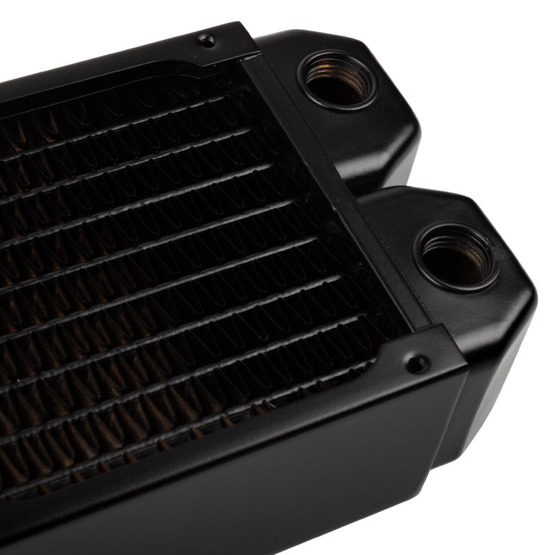 Zusätzlich bietet dieser Radiator die Möglichkeit, bis zu vier 92-mm-Lüfter in einer Push/Pull-Konfiguration zu installieren. Dies maximiert den Luftstrom und verbessert die Kühlung noch weiter, was besonders bei Overclocking-Anwendungen von Vorteil ist. Mit zwei G1/4-Anschlüssen ist der NexXxoS XT45 außerdem sehr flexibel und lässt sich leicht in Ihr bestehendes Kühlsetup integrieren.