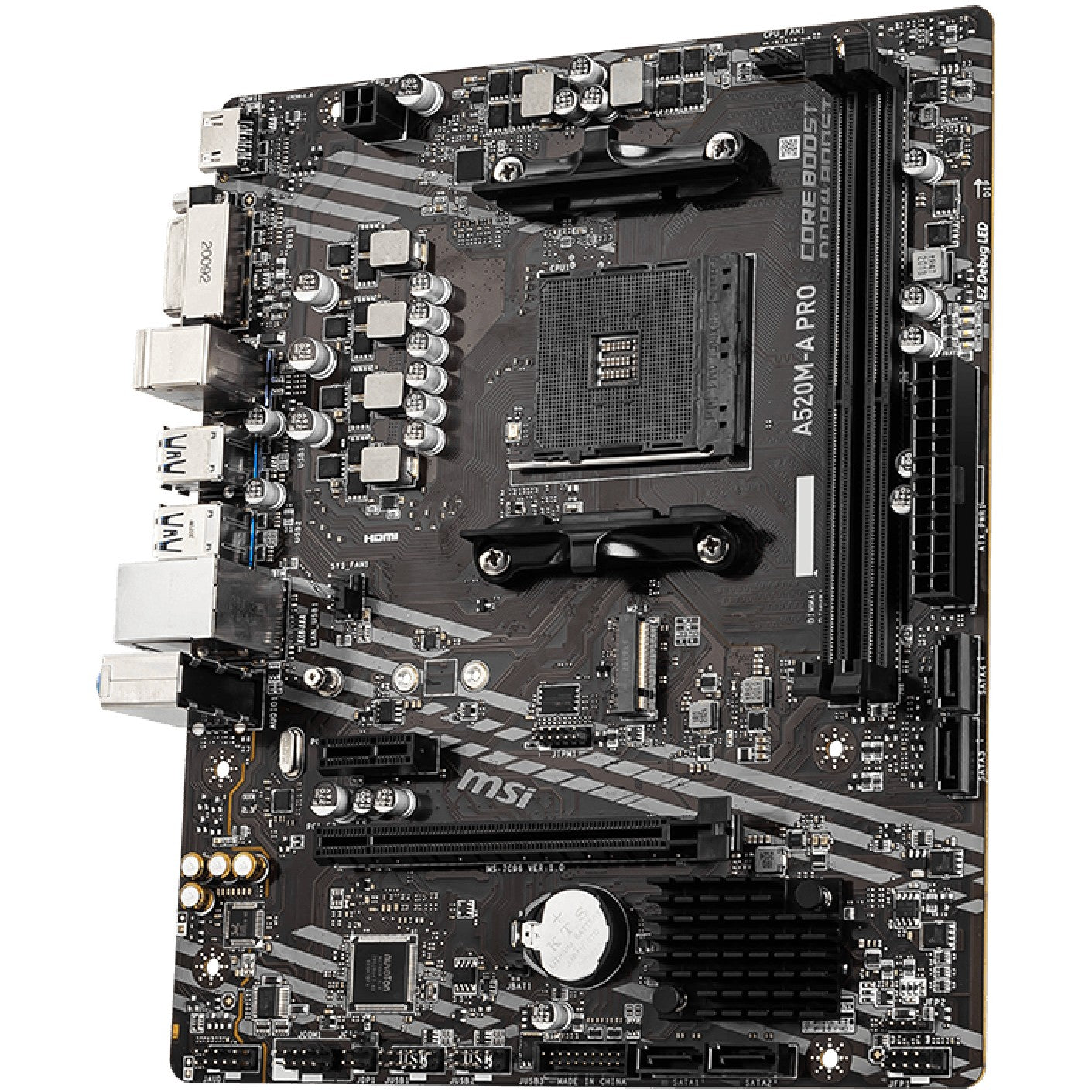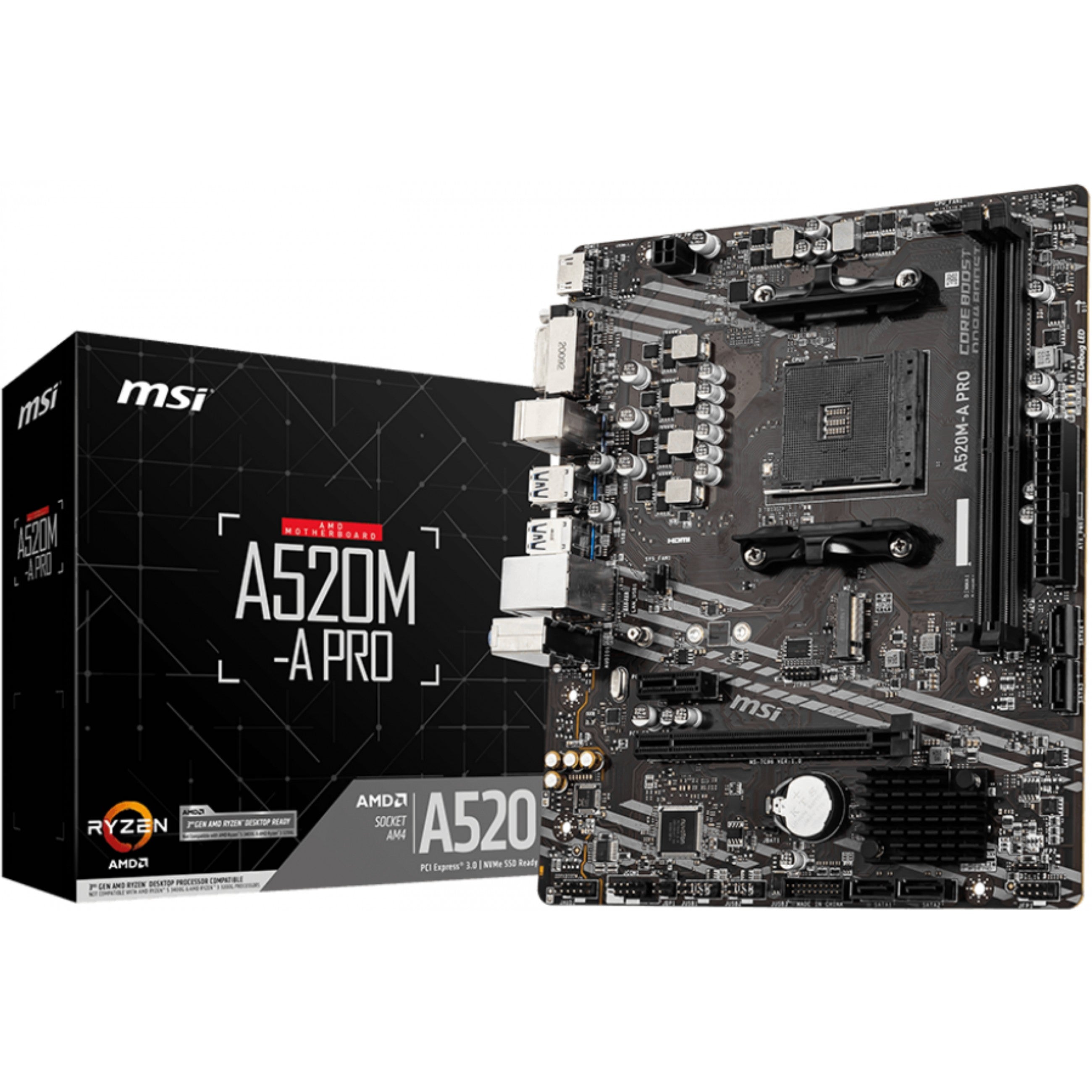 AM4 MSI A520M-A PRO mATX (M.2 Port. PCIe 3.0 x 4. NVMe PCI:1 PCIe:1 RAM:4)
