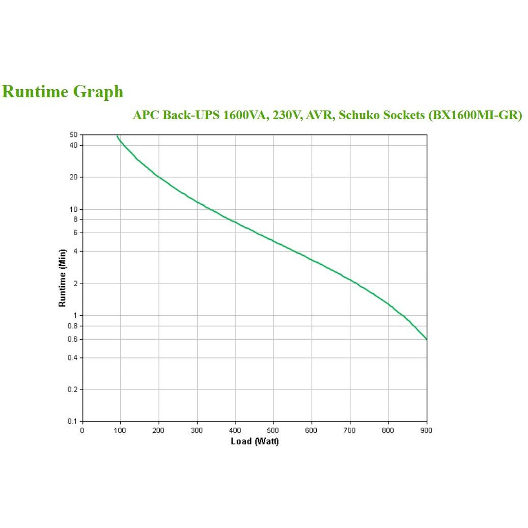 APC Back-UPS 1600VA. 230V. AVR. Schuko Ausgänge. Batterie. 24V (2x 12V. 7.0Ah). USV-Topologie: Line-Interaktiv. Ausgangskapazität: 1.6 kVA. Ausgangsleistung: 900 W. AC-Steckertypen: Typ F. Stecker: Typ F. Anzahl der AC-Ausgänge: 4 AC-Ausgänge. Akku-/Batterietechnologie: Plombierte Bleisäure (VRLA). Typische Backup-Zeit bei voller Belastung: 1 min. Typische Backup-Zeit bei halber Belastung: 6.5 min. Formfaktor: Kompakt. Produktfarbe: Schwarz. Kabellänge: 1.2 m. Konformitätsbescheinigungen: RoHS. Zertifizierung: CB Meet EN62040-1 / CE / IEC-62040-1 / IEC-62040-2