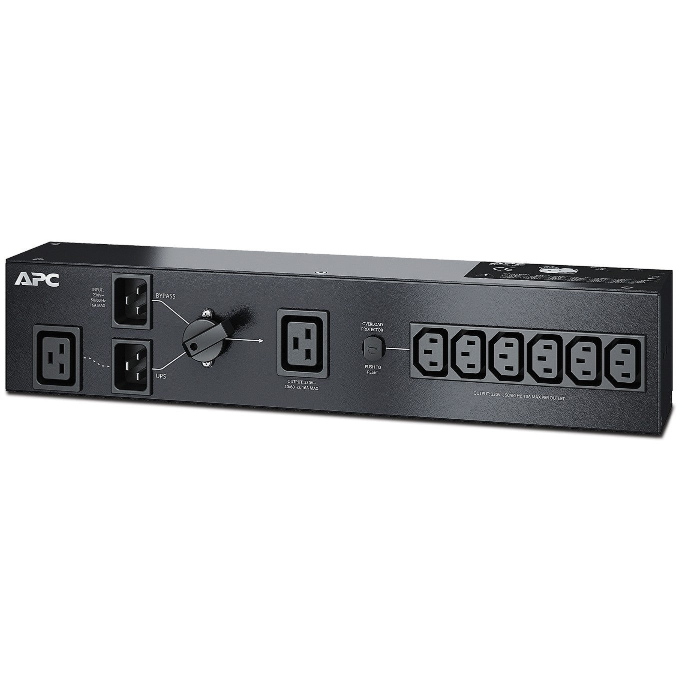 APC Service Bypass PDU. 230 V. 16 A mit (6) IEC C13 und (1) C19. Konformitätsbescheinigungen: RoHS. Zertifizierung: VDE. REACH. Breite: 432 mm. Tiefe: 76 mm. Höhe: 89 mm