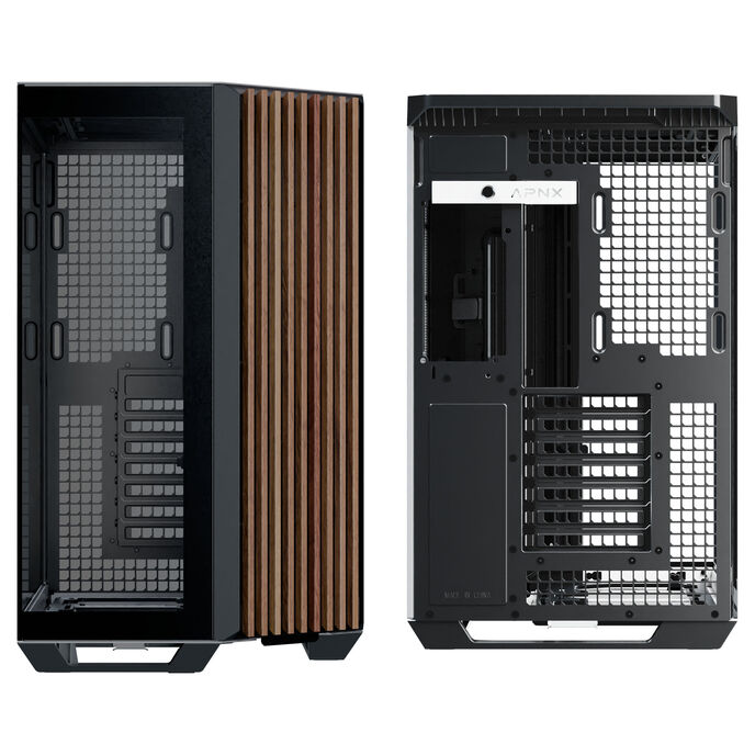 APNX V1 PC-Gehäuse, Midi-Tower, ATX, Tempered Glass - Holz, schwarz / weiß