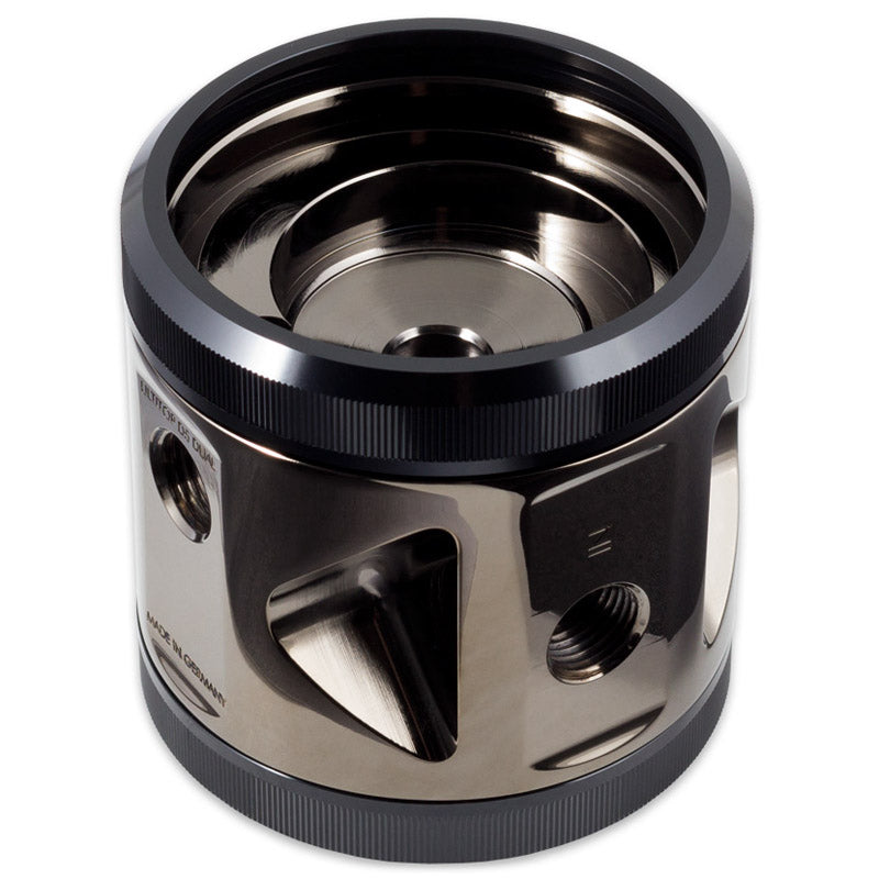 Entdecken Sie den aqua computer ULTITOP DUAL D5 MIRROR Pumpendeckel, die perfekte Lösung für Ihre duale D5-Pumpen-Konfiguration. Dieser Pumpendeckel in elegantem Schwarz vereint Funktionalität und Ästhetik und wird zum Herzstück Ihres Wasserkühlungssystems.