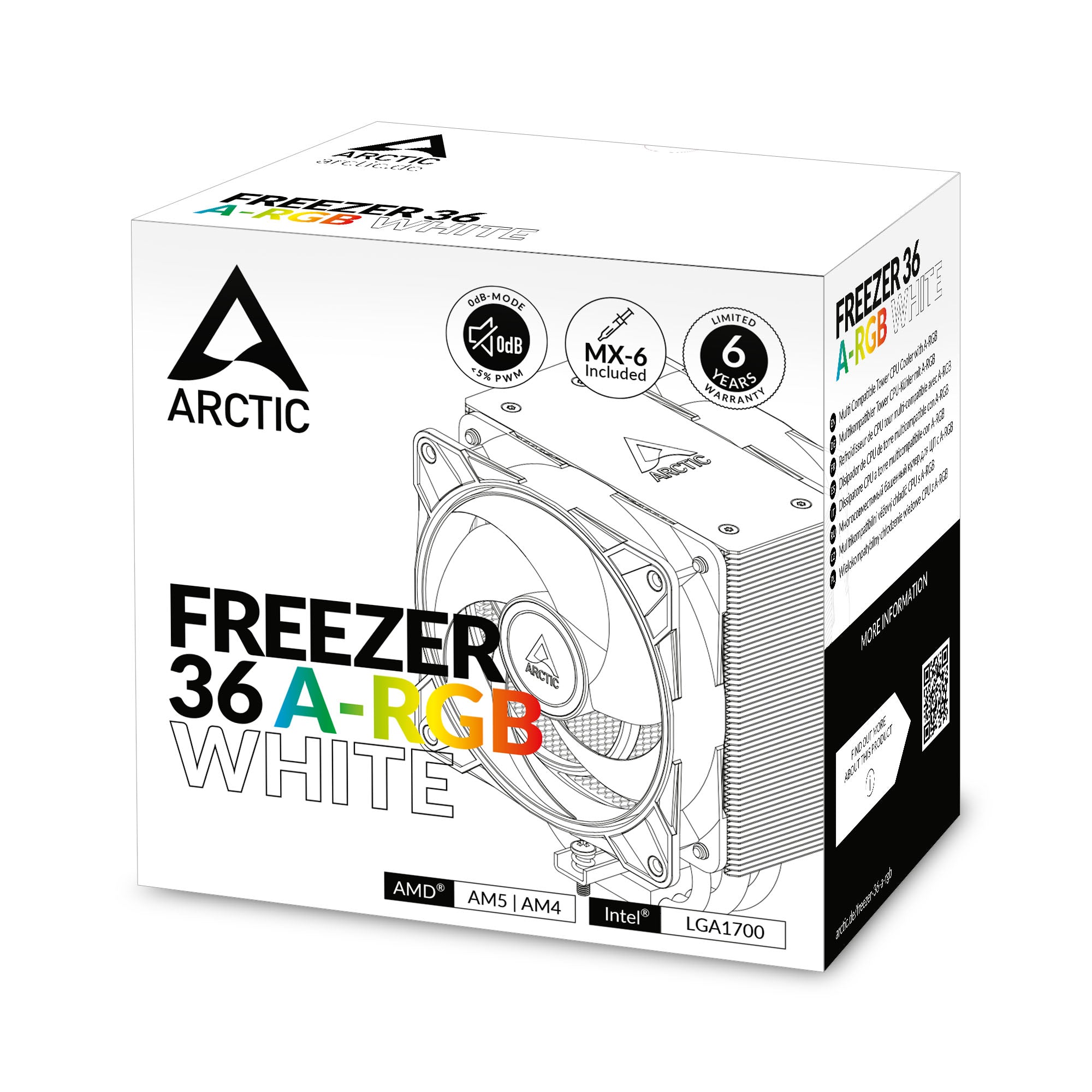 Setzen Sie auf Qualität und Leistung mit dem Arctic Freezer 36 ARGB White CPU-Kühler und verwandeln Sie Ihren PC in ein kühles Powerhouse, das sowohl leistungsstark als auch ästhetisch ansprechend ist.