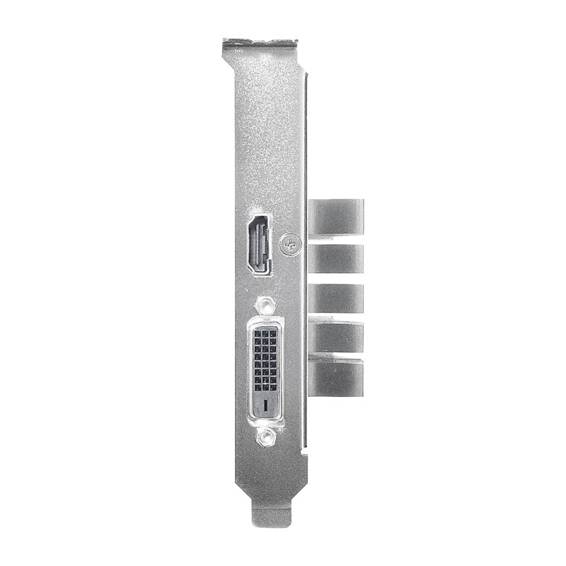 Kompakte "Pascal"-Entry-Level-Grafikkarte, 1.266/1.506 MHz Base/Boost, 6.008 MHz Speichertakt (effektiv), 1× HDMI / 1×DVI-D, passives Kühlerdesign & 2 GB GDDR5 VRAM