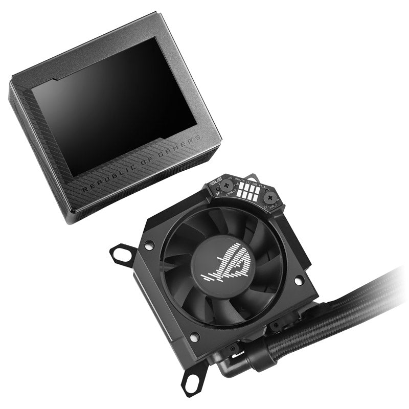 Ein besonderes Highlight der ROG RYUJIN III ist die integrierte RGB-Beleuchtung, die individuelle Anpassungen ermöglicht und Ihrer Hardware einen einzigartigen Look verleiht. Zusätzlich verfügt die Pumpeneinheit über ein Display, das wichtige Systeminformationen anzeigt und gleichzeitig das schlichte, aber stilvolle Design unterstreicht.