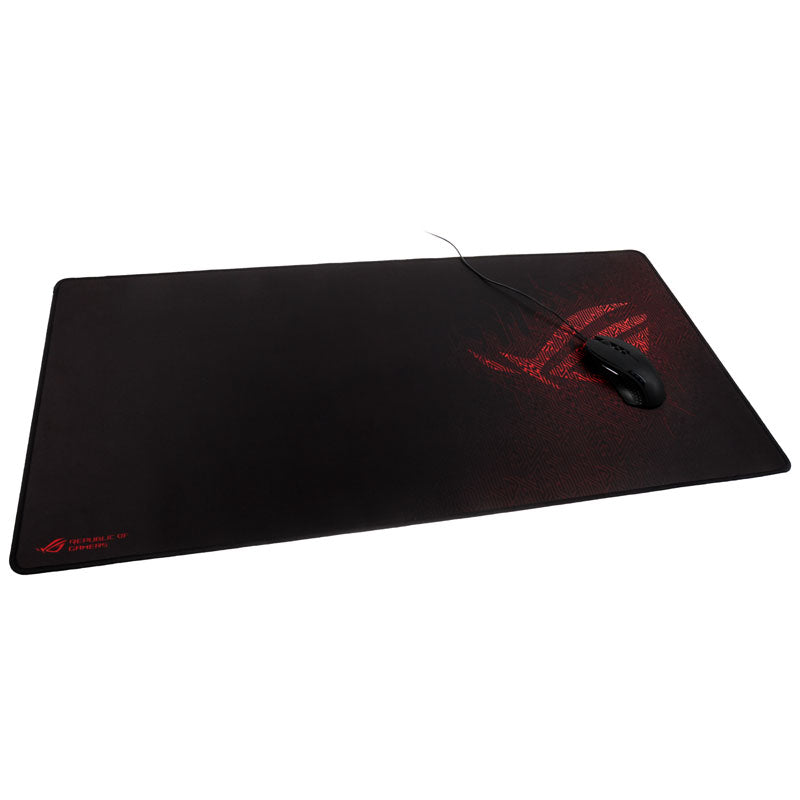 Riesiges Mauspad (90 x 44 cm) von ASUS im ROG-Design mit optimalen Gleiteigenschaften, gummierter Unterseite & vernähtem Rand