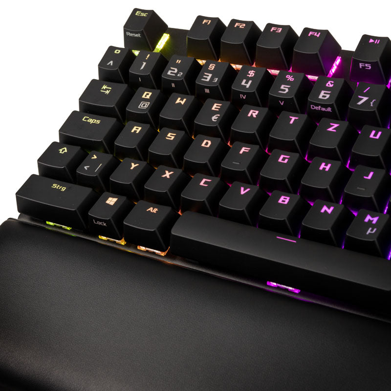 Die magnetische Handballenauflage sorgt für zusätzlichen Komfort, sodass Sie auch bei langen Gaming-Sessions entspannt bleiben können. Außerdem ermöglicht die umfangreiche RGB-LED-Beleuchtung eine individuelle Anpassung und sorgt dafür, dass Ihre Tastatur in jeder Umgebung ein echter Hingucker ist.