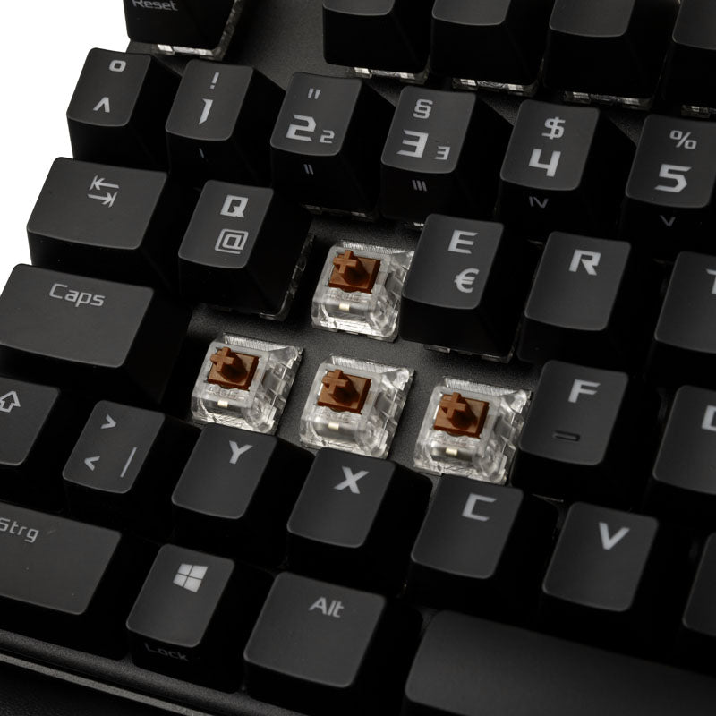 Die NX-Brown-Switches von ASUS bieten ein hervorragendes taktiles Feedback, das Ihnen hilft, präzise Eingaben zu tätigen und gleichzeitig ein angenehmes Tippgefühl zu gewährleisten. Mit dem kompakten TKL-Formfaktor ohne Nummernblock sparen Sie wertvollen Platz auf Ihrem Schreibtisch und haben mehr Freiheit für Ihre Mausbewegungen.