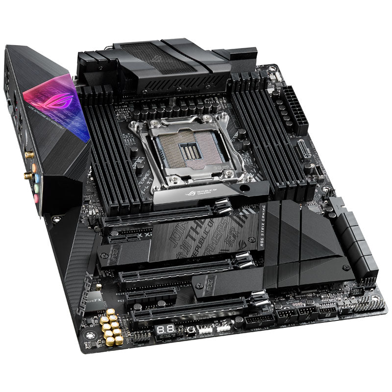 Enthusiasten-Mainboard (ATX) mit X299-Chipsatz, 3x PCIe 3.0 x16 (2x x16 / 1x x8), 5x USB 3.1 (1x Typ C) / 6x USB 3.0 / 8x USB 2.0, 3x M.2 (PCIe 3.0 x4) / 8x SATA 6G, Aura Sync LED-Beleuchtung, ax-WiFi und 2,5Gb-LAN