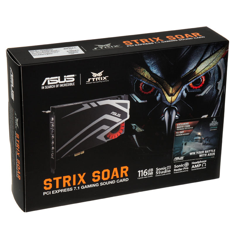 Schwarze STRIX 7.1 PCIe Gaming Soundkarte mit exzellentem Bass, Kopfhörerverstärker und Sonic Radar