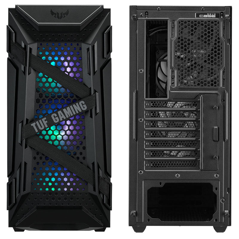 Edler Midi-Tower von ASUS in Schwarz, großes Seitenteil aus Tempered Glass, 3x 120-mm-Fans mit D-RGB-LED-Beleuchtung & 1x 120 mm, Platz für 1x 280/360-mm-Radiator, Grafikkarten bis 320 mm