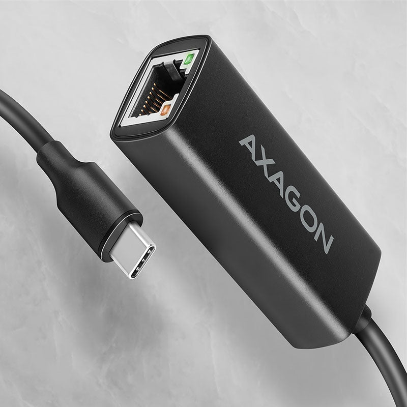 Ethernet Adapter von AXAGON, USB-C zu Gigabit Ethernet, aus Aluminium, leicht und kompakt, mit Kabelverlängerung