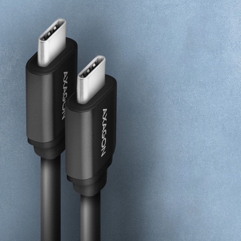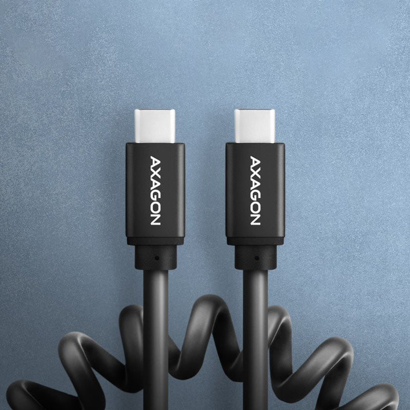 AXAGON BUCM-AM20TB Spiralkabel, USB-C zu USB-C, 1 m, USB 2.0, 2.4 A, ALU, PVC - Schwarz