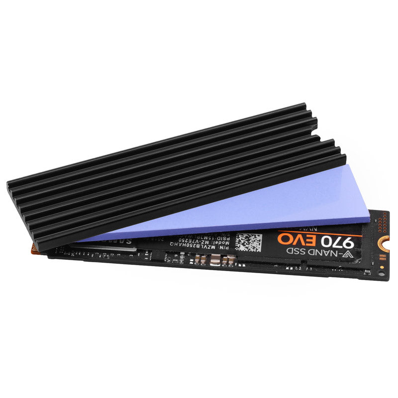Der Kühlkörper wird inklusive Thermalpads geliefert, die eine einfache und effektive Installation garantieren. Diese Pads sorgen dafür, dass die Wärmeübertragung zwischen der SSD und dem Kühlkörper optimal gelingt, was die Performance Ihrer Hardware noch weiter steigert.