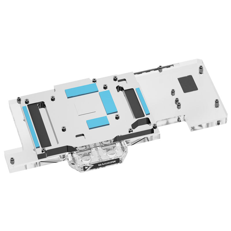 Ein herausragendes Merkmal des Barrow LRC2.0 ist die vollständige Abdeckung der GPU, die eine effiziente Wärmeableitung über die gesamte Fläche garantiert. Dies sorgt nicht nur für eine verbesserte Kühlung unter Last, sondern auch für ein optimales Gaming-Erlebnis mit stabilen Bildraten und verbesserter Leistung.