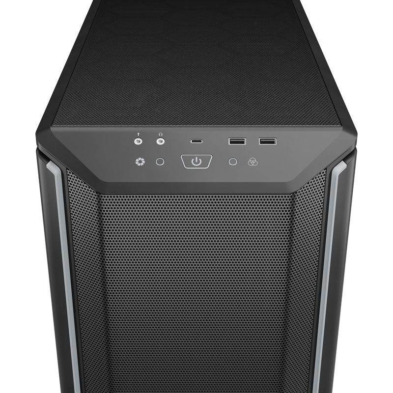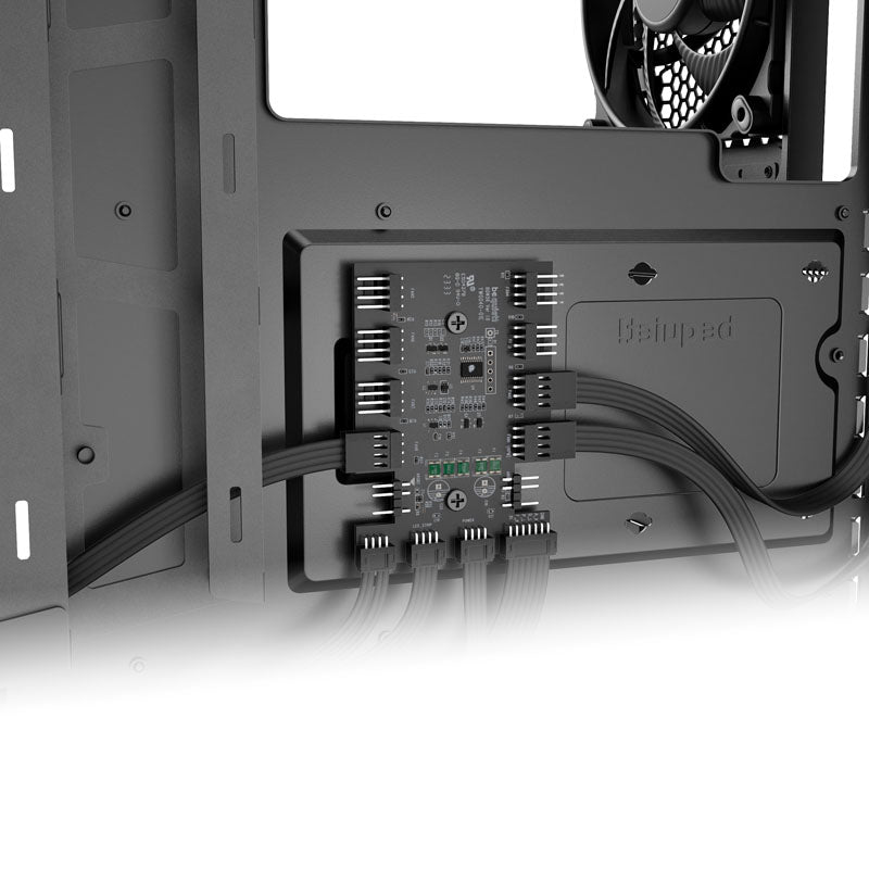 Midi-Tower-Gehäuse, mit Seitenteil aus Tempered Glass, Deckel und Front mit Mesh, drei integrierte PWM-ARGB-Lüfter, dezente ARGB-Beleuchtung mit integrierter Steuerung