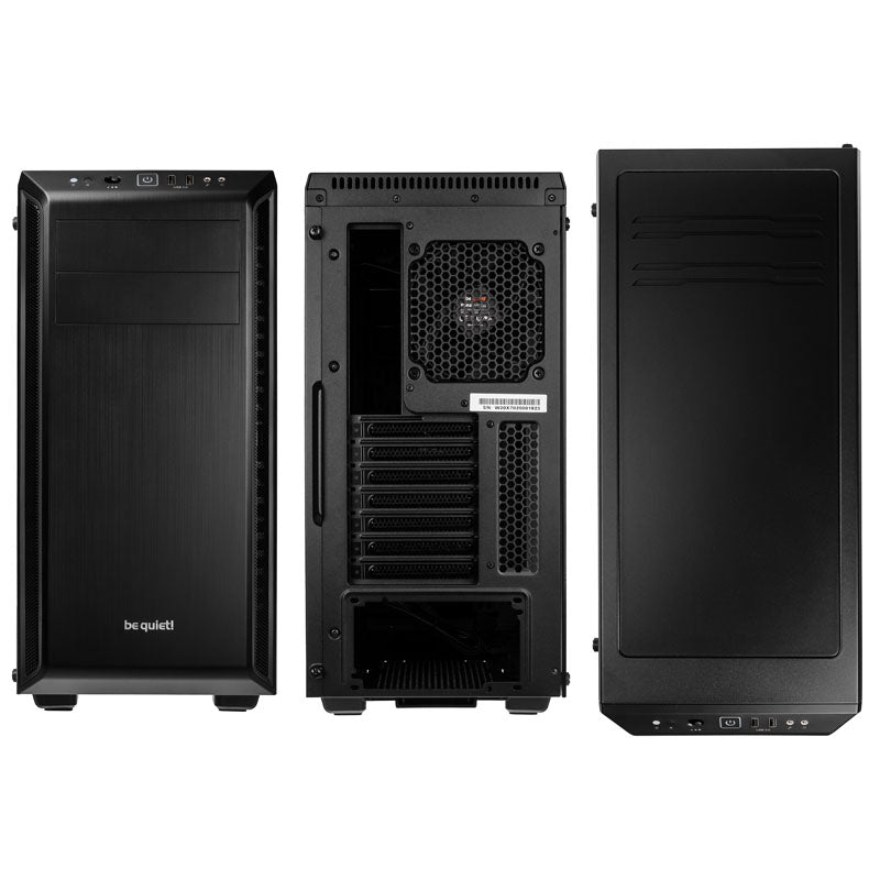 Silent-Midi-Tower von be quiet! mit Hartglas-Seitenfenster, zwei vorinstallierte Lüfter & Dämm-Matten in Front/Deckel/Seitenteil, Platz für mehrere große Radiatoren & 3-Stufen-Lüftersteuerung, herausragende Kühlleistung & cooles schwarzes Design