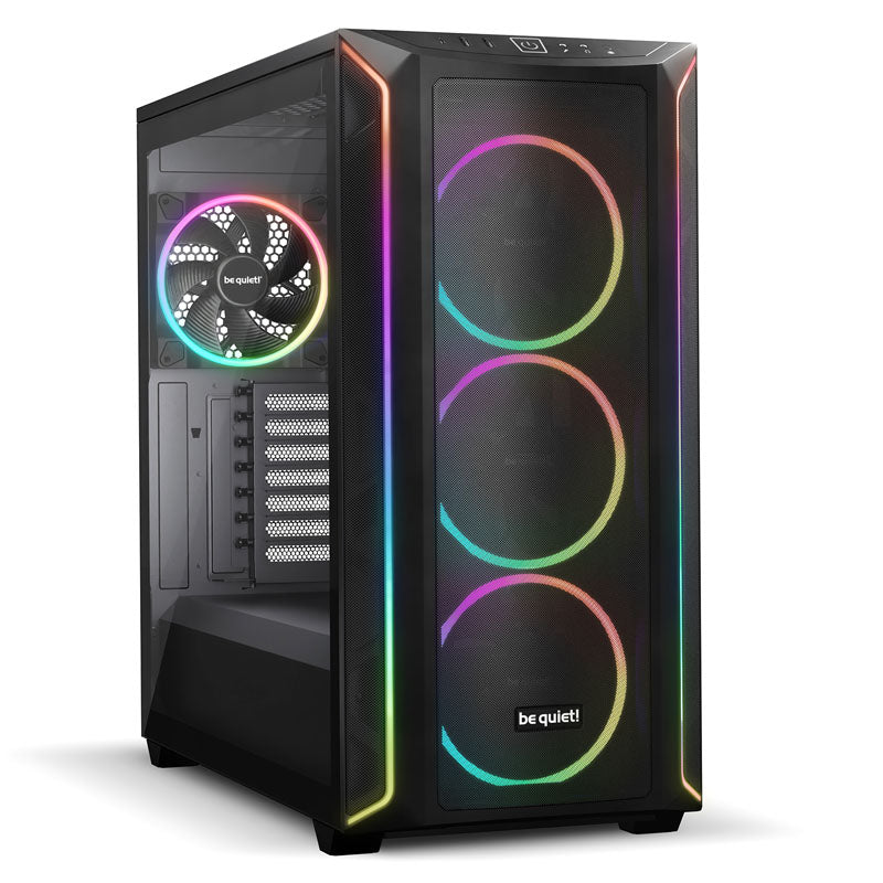 Midi-Tower-Gehäuse, mit Seitenteil aus Tempered Glass, perforierter Deckel, vier integrierte PWM-ARGB-Lüfter, dezente ARGB-Beleuchtung mit intergrierter Steuerung