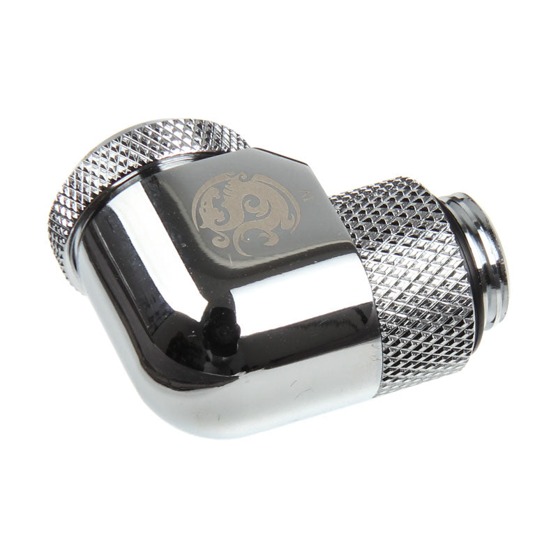Bitspower Multi-Link Adapter Anschluss 90 Grad G1/4 Zoll AG auf 12mm AD Hardtube - drehbar, silber